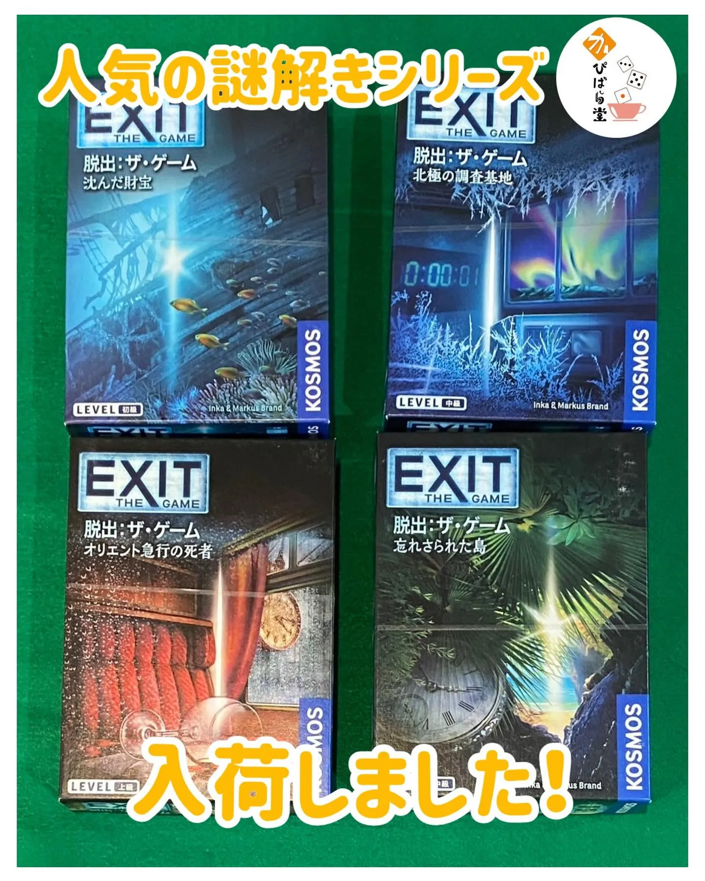 大人気の謎解きシリーズ『EXIT』4点が、店内ゲームに加わり... 大人気の謎解きシリーズ『EXIT』4点が、店内ゲームに加わりました!いろんな難易度がありますので、好みやその日の気分で選べます✌️謎解き系を初めて遊ぶ方も高難易度に挑戦したい方も是非お手に取ってた…